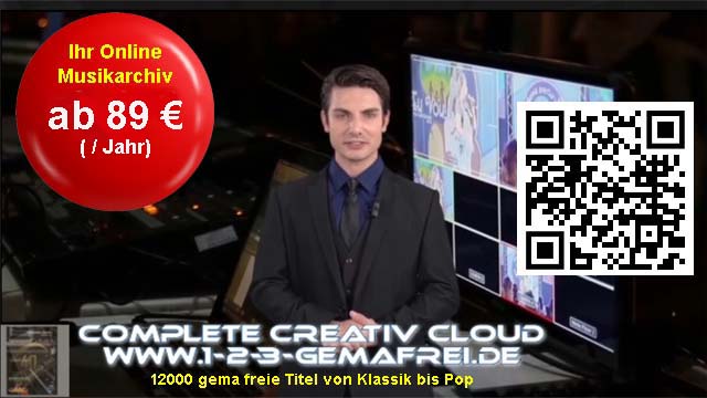 Access to the complete archive online for 1 year. We regularly produce new music. Once completed, the new music pieces are immediately available for download. Online access is valid for 1 year under the Compact Amateur License. You can synchronize your own videos without restrictions, publish them, but not sell them commercially.