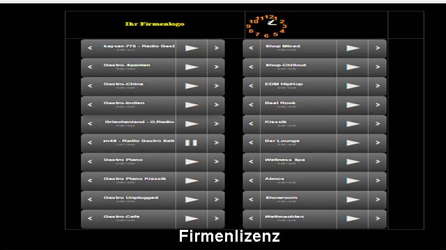 Radioprogramme gema frei von Klassik bis Pop, ideal für Gastro und Gewerbe mit über 4000 Musiktitel und 18 Radiokanälen online. Angenehme Hintergrundmusik aus verschiedenen Radiokanälen schafft die passende Atmosphäre für Gäste, Patienten und Kunden. Ihr Instore Streaming Radio für die öffentliche Aufführungen z.B. in Verkaufsräumen, Cafés, Hotels, Bars. Einfache Rechnung - Ein Musikzugang mit Vollzugriff auf alle Radiokanäle für einen Beschallungsraum kostet im Jahr 49 Euro, egal wie groß die Fläche an einem Beschallungsort ist.